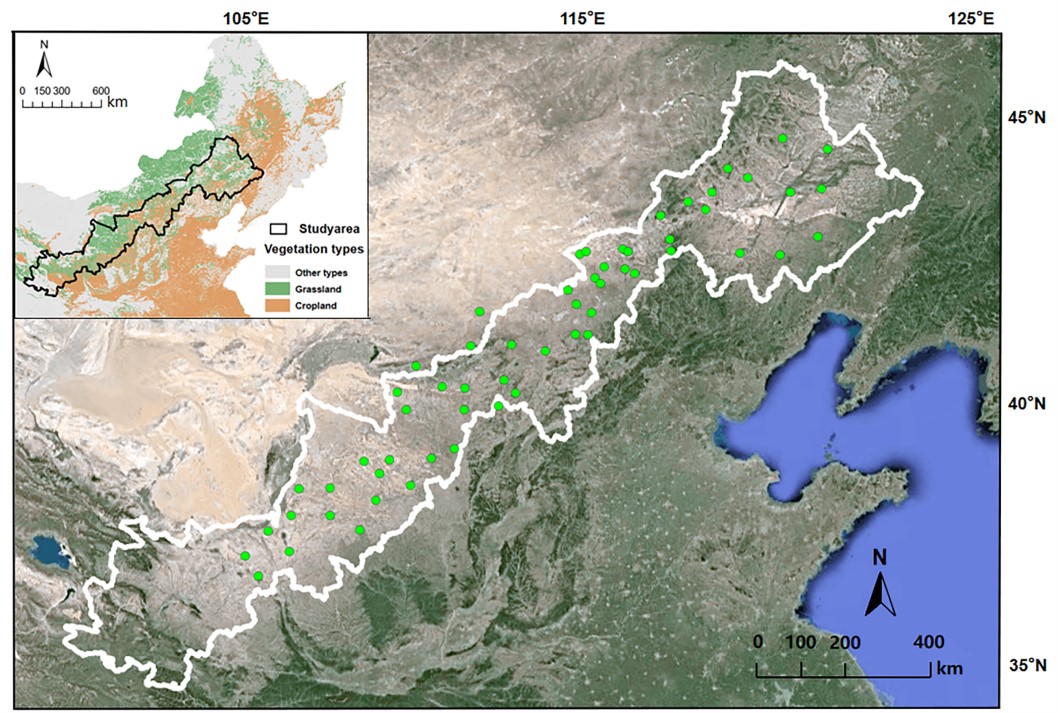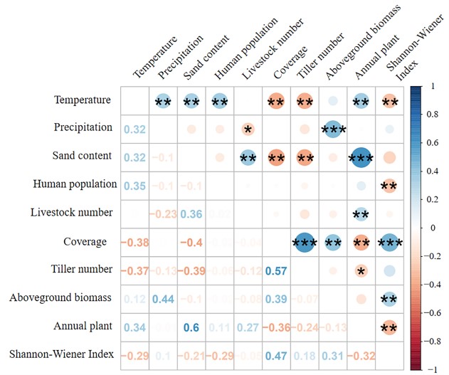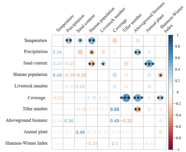 本研究以中国北方温带草原为研究对象,定量分析了环境因子和植物群落属性对草地ANPP的直接和间接影响。研究结果表明,在区域尺度上,降水等气候因子对ANPP的贡献率是土壤质地和人类活动的10-40倍,因此,区域尺度上气候变化对草地生产力提升的限制作用值得关注。此外,提高物种多样性和增加植被覆盖度是快速提高草地生产力的有效措施,将有效缓解气候变化对退化草地的负面影响。