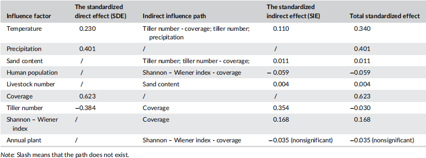 表1 SEM结果中各影响因子对ANPP的标准化直接效应和间接效应及总标准化效应
