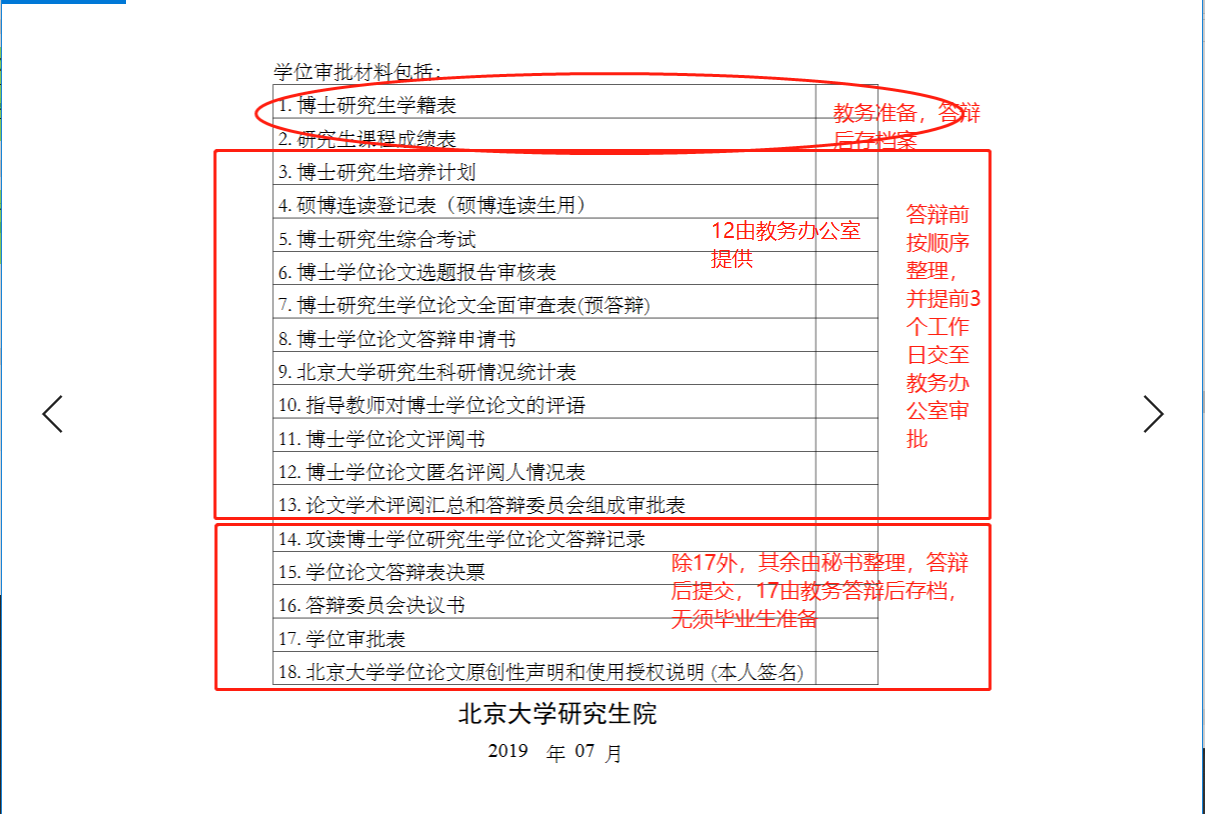 d.论文信息及秘书表格(填写问卷星://www.wjx.cn/vj/rDg5hYr.aspx。如果秘书有更换可以重新填写,毕业生姓名后面标注新,如“张三(新)”;研究方向按照论文实际填写,答辩秘书需与导师确定,由博士后或中级及以上职称老师担任,需要具备北大工资号,实在有困难的课题组,可以由认真负责的高年级博士生担任,请务必安排认真负责的人员担任,答辩秘书权限由教务办公室根据秘书信息统一开通);