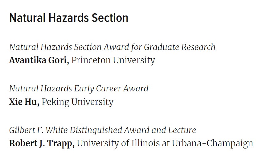 胡燮研究员荣获美国地球物理联合会AGU Natural Hazards Early Career Award