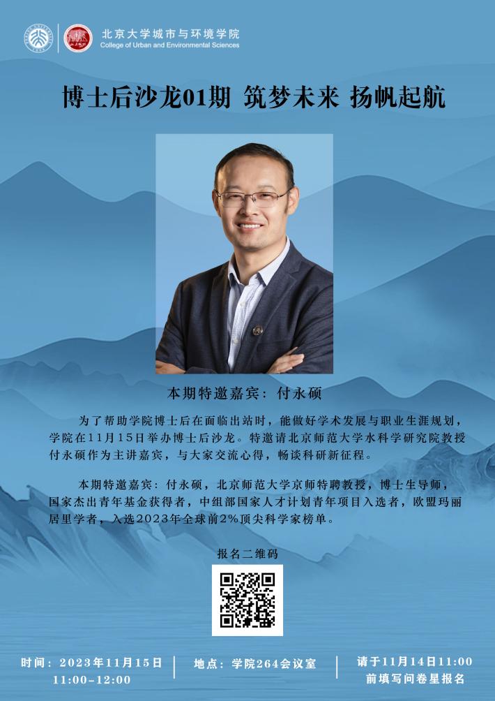 为了帮助学院博士后在面临出站时,能做好学术发展与职业生涯规划,学院在11月15日举办主题为“筑梦未来,扬帆起航”的博士后沙龙。特邀请北京师范大学水科学研究院教授付永硕作为主讲嘉宾,与大家交流心得,畅谈科研新征程。