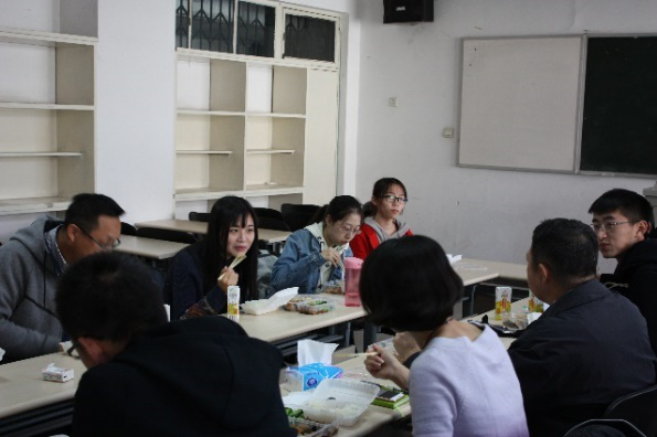 午餐会当天,老师们纷纷提前来到了3358专业教室并分发午餐,等待同学们下课归来。