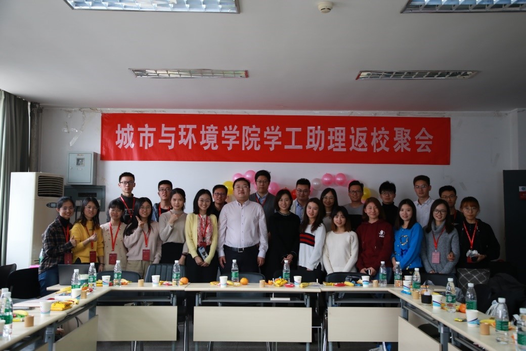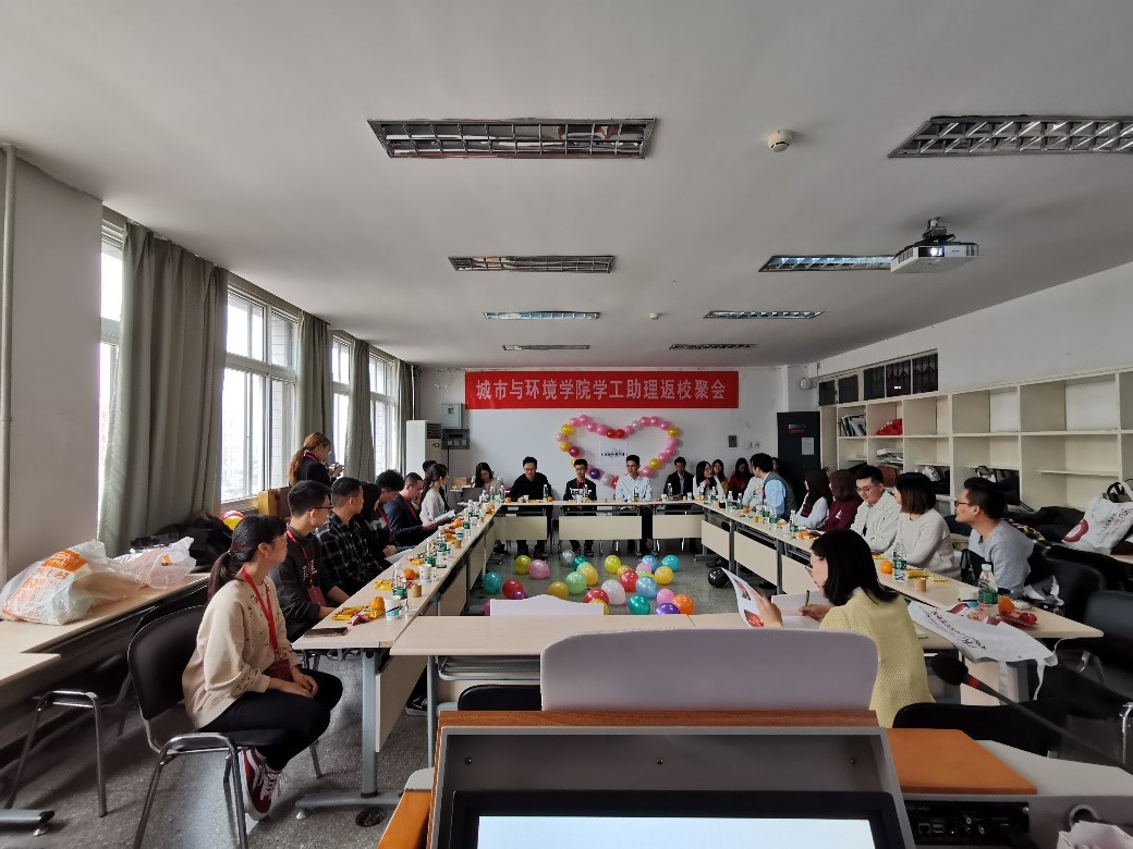 11月23日下午,色情影片 历届学工助理返校交流活动在逸夫二楼3358顺利举行。色情影片 副院长金鑫,团委书记、学生工作办公室主任王宇凡,团委常务副书记、专职辅导员周伟,学生工作办公室副主任柴腾出席聚会,历届学工助理参加聚会。聚会现场用彩色气球装饰,设有“城环学工助理欢迎回家”标牌,屏幕上放映的助理老照片和音乐,布置得温馨整齐。