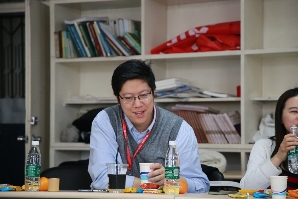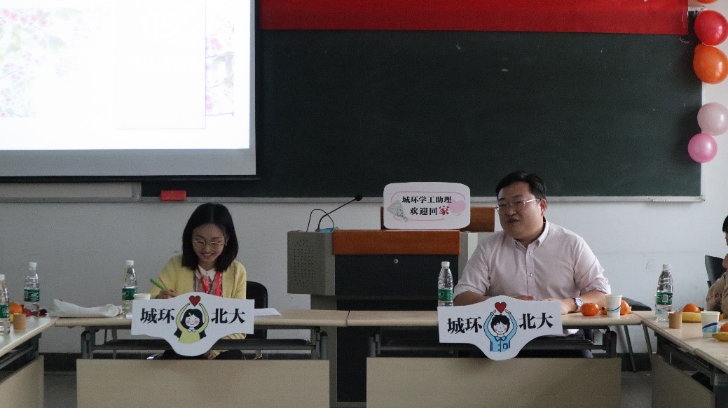 游戏结束后,助理们围坐一圈进行座谈,共话过去,展望未来。金鑫老师听闻有学工助理专门从西安和深圳赶来北京参加聚会,十分感动,他向各位学工助理如何重视这个集体表示感谢,对大家在校期间勤勤恳恳为学院做出的贡献表示感谢。他简单介绍了学院近年来的发展变化和未来的发展规划,并对大家普遍关注的学院新大楼建设进行了详细解答,同时号召同学们认捐新楼报告厅座椅,在北大城环留下自己的印记。在金老师的带动下,助理们追忆往昔,畅谈未来,欢声笑语不断,不大的屋子里温情流动。