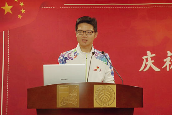 随后,刘耕年上台致辞,他首先对参与重大活动的师生表示了祝贺与感谢,赞扬了师生在活动中的全情投入与对祖国深切的爱。他指出,当我们和国家、和民族能够如此紧密地联系起来时,当我们能够为祖国献上自己的一份力、献上自己的一颗心时,我们就是伟大的。他希望全体师生能够不忘初心、牢记使命,始终铭记北大的光荣爱国传统,将个人的发展与国家、民族的命运紧密相连,在新时代,新征程中奋勇追梦。