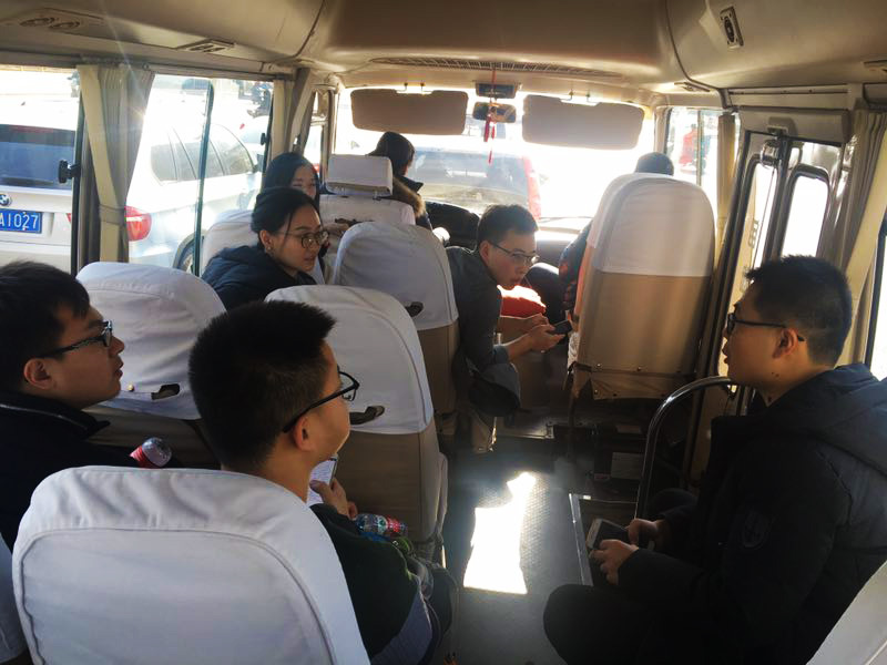 师生们在路上学习十九大,讨论交流金各庄的情况