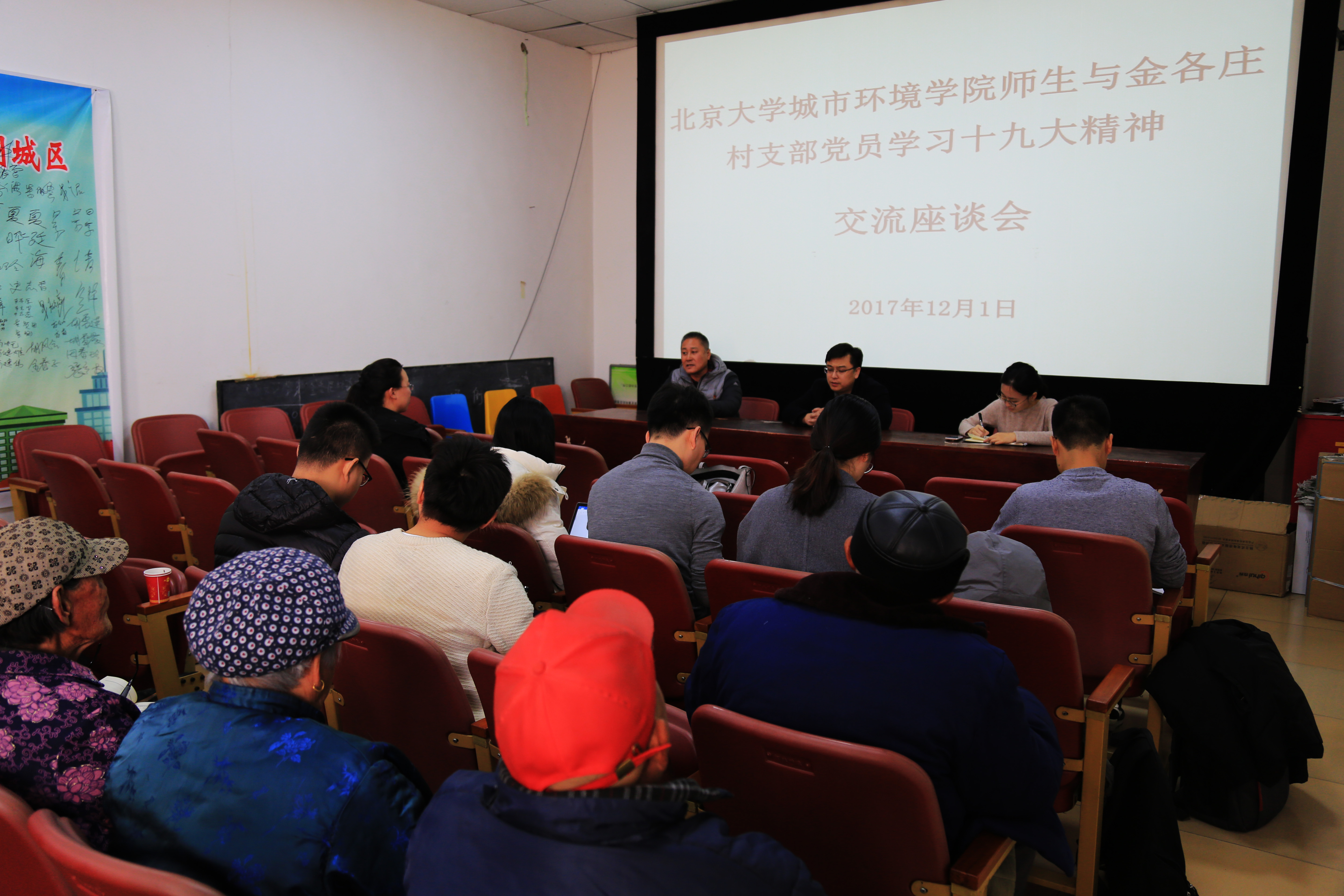 2017年12月1日,色情影片 团委书记王宇凡带领学院2016级硕士生党支部,赴通州区西集镇金各庄村与村支部开展学习十九大精神主题交流和考察活动。北京市通州区西集镇宣传部副部长郭宝江、组织部赵慧颖同志、金各庄村村书记果松军共同出席活动。活动通过十九大精神宣讲、党建经验介绍、学习体会交流和“煤改气”民生工程参观、流域环境考察等,密切了学生党员与基层党员之间的联系,深入探讨了十九大精神如何真正扎根基层、惠及百姓,是一次党员师生深入基层学习贯彻十九大精神的生动实践。