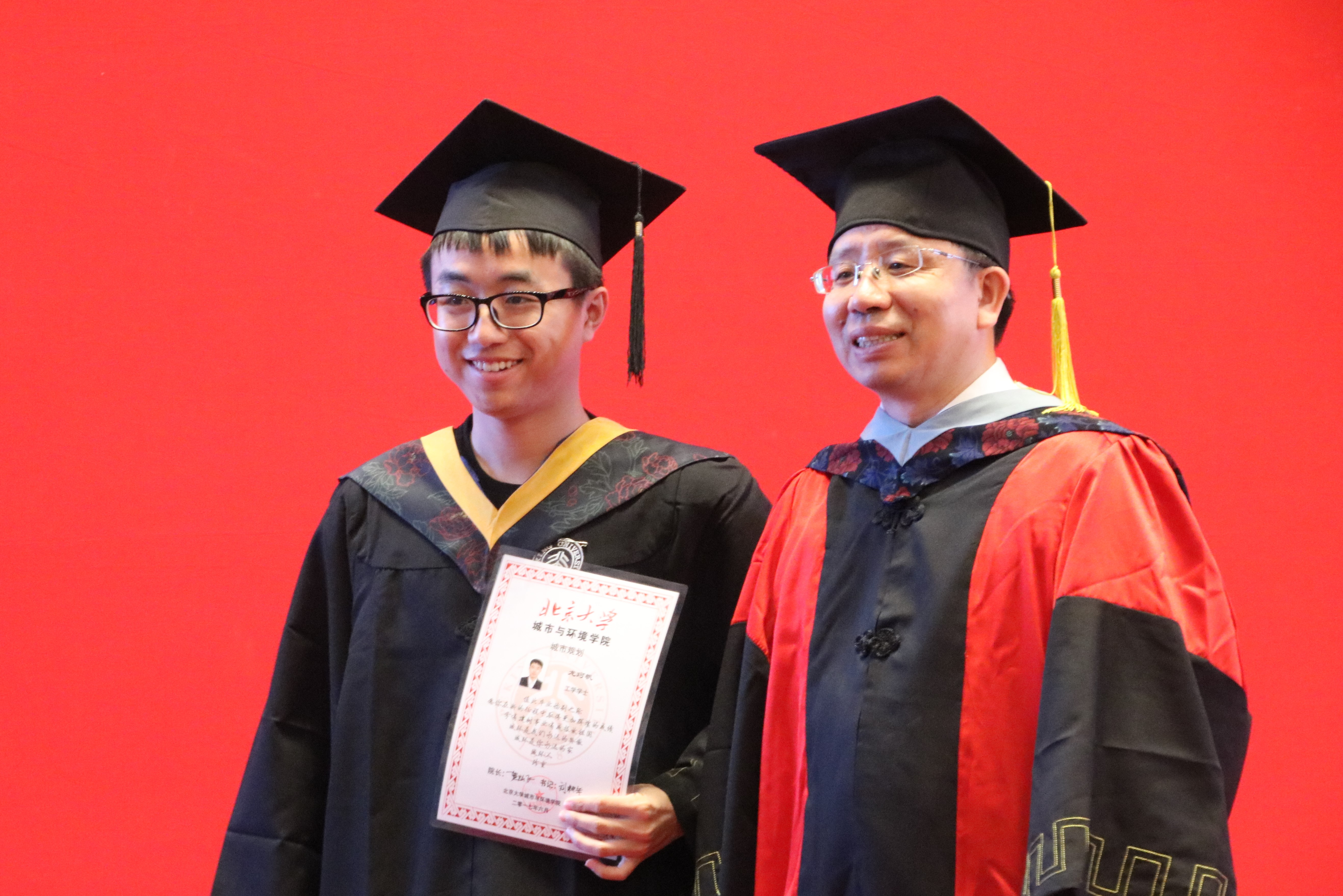 典礼开场的毕业纪念视频述说着同学们在北大最喜欢的、最自豪的、最难忘的事情,并向学院和学校献上最真挚的感谢与最衷心的祝福。毕业班班主任的寄语、嘱托与当年129合唱的旋律,最后凝结为一句“毕业快乐,前程似锦”。