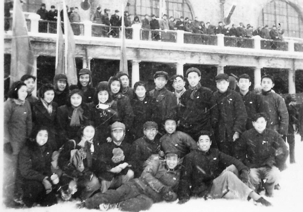 1951 年清华地学系送同学参军在清华体育馆前合影留念