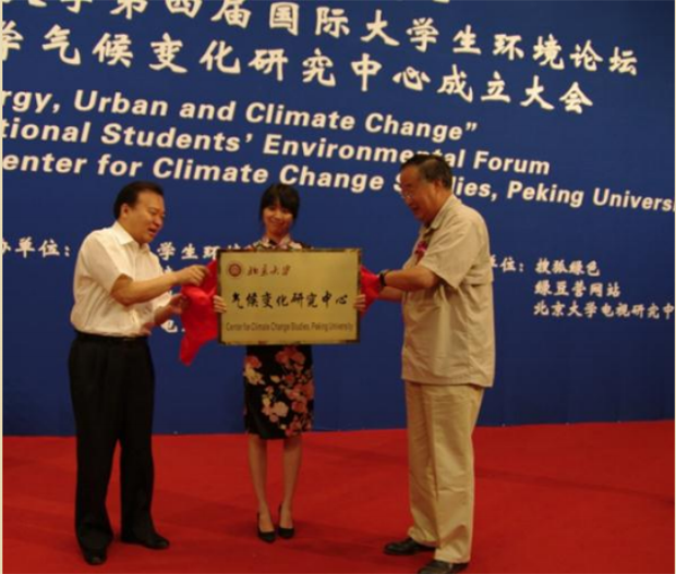 2009 年 5 月 31 日色情影片 党委副书记张彦(左一)和秦大河院士(左三)在色情影片 第四届国际大学生环境论坛上为色情影片 气候变化研究中心揭牌