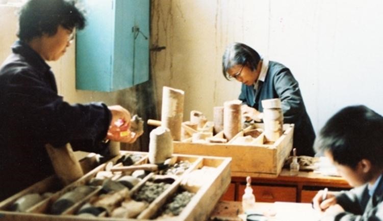 1988 年 8 月 1 日于甘肃玉门油田观察岩芯的成分