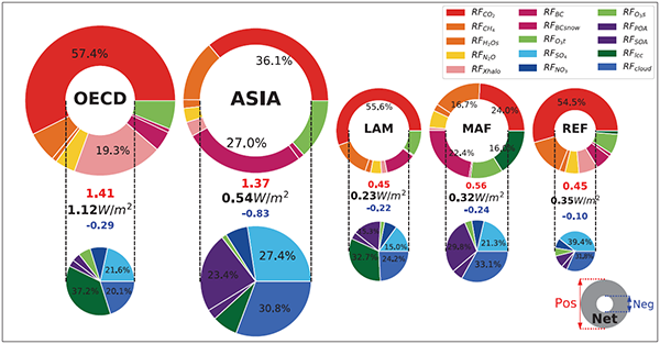 图1 全球主要国家和地区对全球气候强迫的贡献