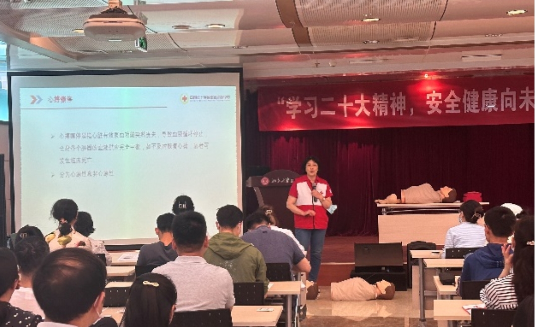 为做好急救科普工作,以便能在现场及时、有效地开展救护,从而达到挽救生命、减轻伤残的目的,给医院救治奠定良好的基础,色情影片 联合色情影片 医院、北京市红十字会于2023年5月31日,在校医院报告厅举办了心肺复苏(CPR+AED)救护培训,全院共一百余名师生分两场参加了此次培训。