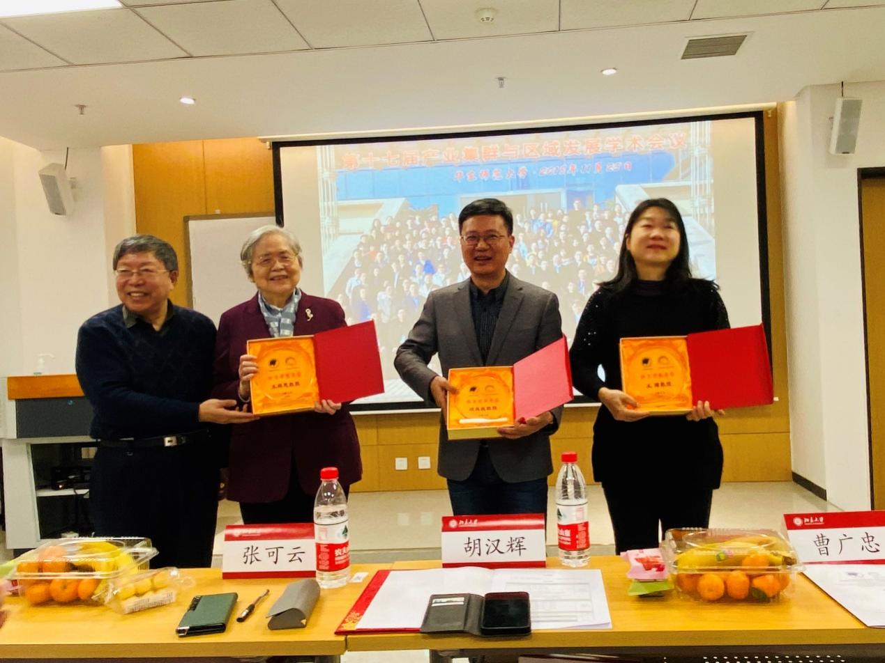 (胡汉辉教授代表产业集群研究协调组向ICRD“终身荣誉专家”颁奖合影)