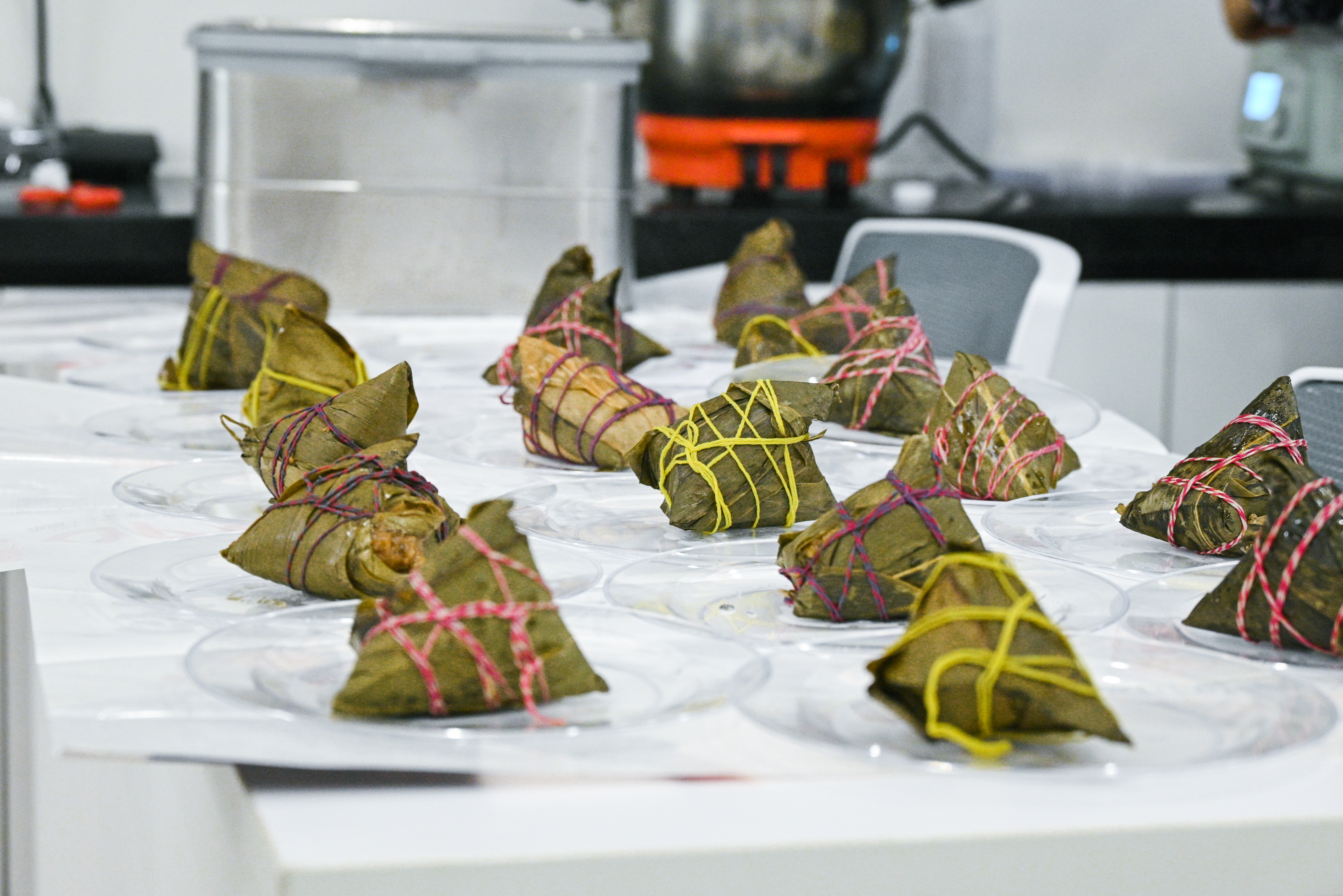 活动现场,综合办公室的老师们自带蒸锅,提前就忙碌地蒸起了各种口味的粽子,每一种都让人垂涎欲滴。一锅锅热气腾腾的粽子摆上桌,屋里顿时清香四溢。老师们寻香而来,品味着美味鲜粽,在一片欢声笑语中,感受着浓浓的节日氛围。