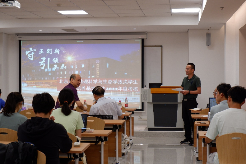 109教室举行。刘耕年教授、唐艳鸿教授、刘鸿雁教授、沈国峰研究员、朱丹研究员、张照斌副教授和蒙吉军副教授共7位老师参加了考核指导,2019级12位同学进行拔尖成果现场和在线汇报展示,2020级和2021级10多位同学旁听了此次考核汇报。