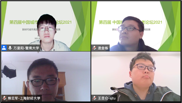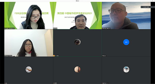 分会场七的主题为“城市人口与劳动力”,高峰线上参与人数达到120多人。张传勇教授主持了上午场,他汇报了基于中国劳动力动态调查数据的劳动力流动、城市人口规模控制与职业多样性实证研究。刘诗濛分享了人力资本如何促进“智本城市”发展。程章继、梁辉都针对人口流动和人才引进主题介绍了自己的研究内容。