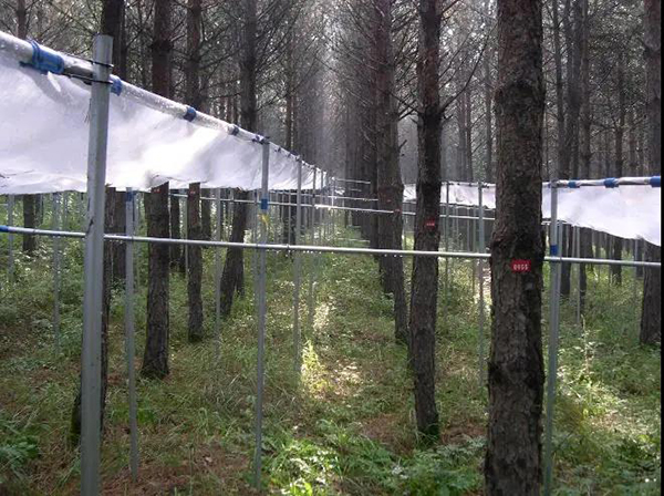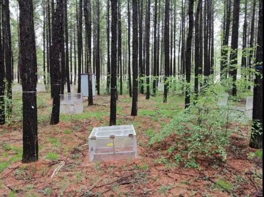 郑成洋副教授团队选择塞罕坝45年樟子松人工林,通过穿透雨转移方法,增加、减少样方内+30%、-30%的水分,设立三个处理三个重复森林降水控制平台。研究樟子松人工林降水改变对水分利用效率、森林生长、土壤养分、植物生理等响应。