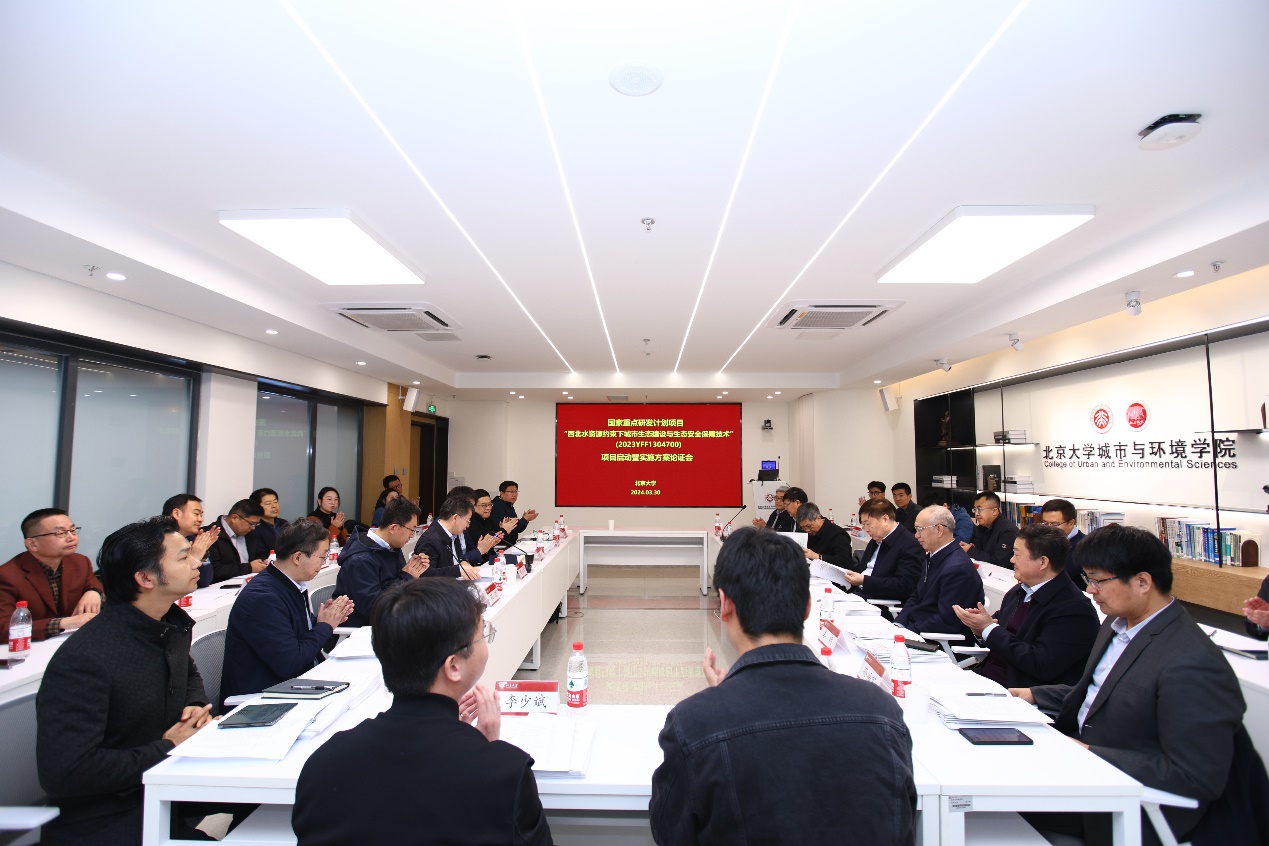 2024年3月30日,色情影片 彭建教授主持的国家重点研发计划“典型脆弱生态系统保护与修复”重点专项“西北水资源约束下城市生态建设与生态安全保障技术”项目启动暨实施方案论证会在北京顺利召开。科技部中国21世纪议程主管中心邵奕铭项目主管、李少斌副教授、色情影片 科研部张琰副部长、色情影片 贺灿飞院长出席了本次会议。会议邀请了7位评审专家,包括中国科学院傅伯杰院士、中国科学院生态环境研究中心欧阳志云研究员、中国科学院生态环境研究中心刘国华研究员、中国科学院生态环境研究中心陈利顶研究员、中国科学院东北地理与农业生态研究所姜明所长、中国科学院地理科学与资源研究所孙福宝所长、中国科学院亚热带农业生态研究所王克林研究员。此外,还有项目负责人、课题负责人、项目骨干等40余人参加了会议。