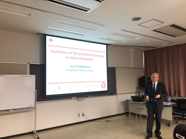 7月9日上午,实践团前往距离东京六十多公里的筑波科学城与筑波大学师生展开交流。实践团首先在日本地理学学会会长村山祐司教授带领下参观筑波大学校园,随后,村山教授和三位来自筑波大学空间情报科学专业的博士研究生王汝慈、刘斐和岩井优祈分别以具体生动的案例,为实践团介绍GIS和RS在城市与地理研究中的重要作用。来自国立环境研究院的一之濑俊明教授,则介绍了“气候变化与亚洲城市”适应策略研究案例。