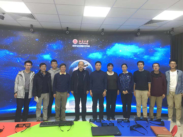会议开始前,到会人员一行8人到地球与空间空学院参观了虚拟仿真实验室。聆听实验室熊老师关于实验设备、运营、管理的教学安排的介绍,观看了“地质博物馆”和“灰峪地质实习”案例,并体验了3D眼镜的实验效果,受到很大启发。
