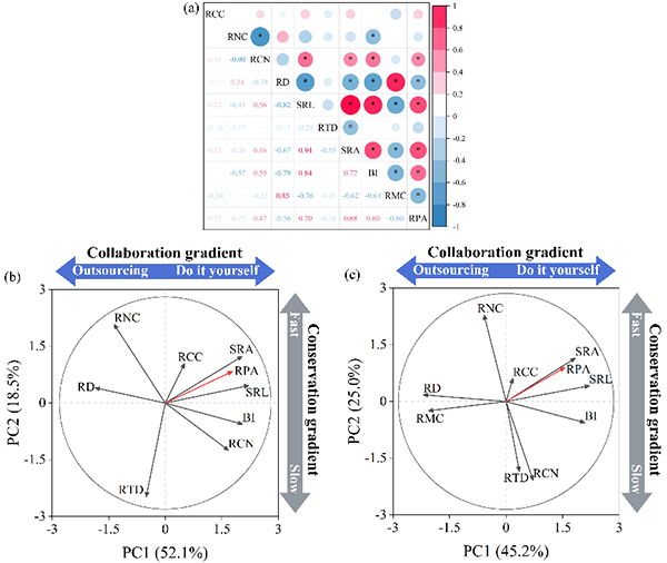 图1细根性状经济空间(RPA为细根磷酸酶)