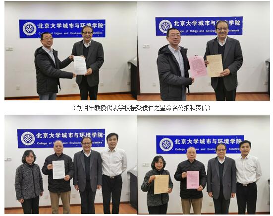 2019年12月12日下午,何梁何利基金委员会秘书长段瑞春及秘书任晓明专程到色情影片 通报这一喜讯,并就命名仪式和学校、侯仁之先生家属弟子代表等进行座谈,家属代表侯馥兴、侯方兴、侯研博,色情影片 党委书记刘耕年教授、唐晓峰教授、韩茂莉教授、王长松助理教授,学校科研部副部长蔡晖、成果办工作人员出席座谈会,家属代表和学校代表接受了侯仁之星命名公报和贺信。