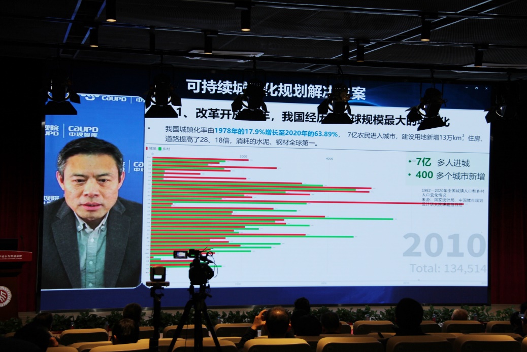 中国城市规划设计研究院院长王凯以“可持续城镇化的规划解决方案”为题发表演讲。他重点分析了绿色城镇化的路径选择,强调应提倡精准适配的规划解决方案,并介绍了本单位近年来承担国土空间规划编制的情况。他期待通过共同努力,在绿色低碳转型发展的时代背景下,迎接可持续城镇化的巨大机遇和挑战,促进国家高质量发展。