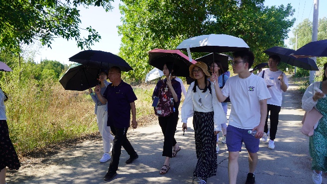 随后,在戴林琳副教授的带领下,两校师生对北京市小汤山镇酸枣岭村的现状进行了调研。小汤山镇和村委有关负责同志介绍了小汤山镇旅游发展以及酸枣岭村的整体发展情况及面临的主要困难,并带领师生实地考察了村中的古井、农宅、大兴寺、未利用土地以及现有产业等。为进一步探索北京乡村振兴的实践经验,师生们前往辛庄村调研,在与新乡民的交流中了解了艺术与文化带动该村发展的历程与路径。