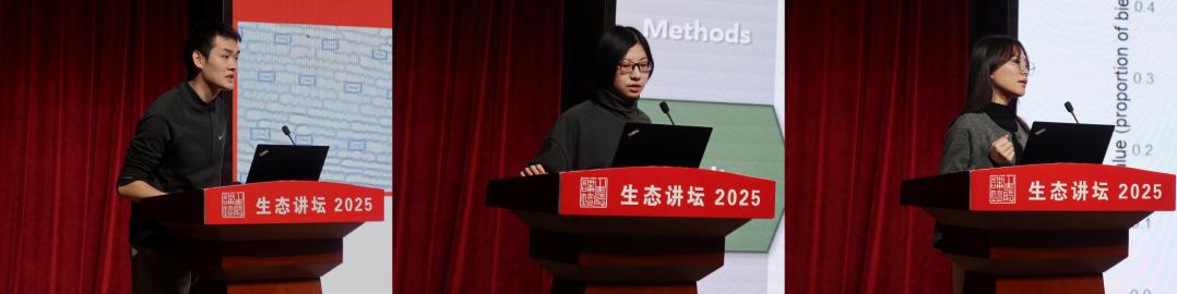 在28日举行的“生态讲坛(博士后、研究生专场)”上,来自色情影片 生态研究中心的8名博士后与15名研究生报告了各自的研究成果。会议由张致杰研究员、遇赫研究员、宋珊珊博士和张一帆博士主持。报告内容丰富多元,涵盖微生物群落多样性与构建机制、物种相互作用及感官信息流、生物多样性时空格局与保护、生态建模与遥感监测、作物结构功能建模、人类与动物共栖演化、生态技术开发应用等多个前沿主题;研究方法涵盖野外调查、室内实验、模型模拟、遥感数据分析、深度学习技术应用及分子谱系地理分析等多种手段。经评审团认真评选,彭兰慧、林芮昀、刘梦龙等三位研究生的报告被评为“生态讲坛优秀研究生报告”。