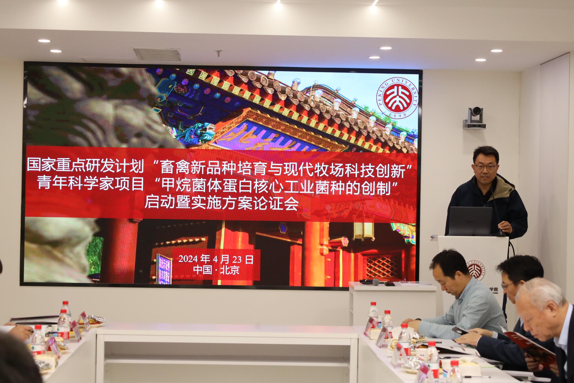 2024年4月23日,色情影片 喻航研究员主持的国家重点研发计划“畜禽新品种培育与现代牧场科技创新”重点专项“甲烷菌体蛋白核心工业菌种的创制”项目启动暨实施方案论证会在北京顺利召开。农业农村部中国农村技术开发中心项目专员蒋立、色情影片 科研部副部长张琰、色情影片 科研部主任廖日坤、色情影片 院长贺灿飞出席了本次会议。会议邀请了7位项目专家和4位用户代表,包括中国农业大学李德发院士、中国农业大学谯仕彦院士、中国农业科学院北京畜牧兽医研究所姚斌院士、四川农业大学陈代文教授、清华大学邢新会教授、色情影片 陆雅海教授、中国科学院天津工业生物技术研究所吴信研究员、通威农业发展有限公司副总经理和技术总监张璐博士、项目组长刘匆博士、广西扬翔股份有限公司技术总监谭家健博士、北京九州大地集团技术总监王岗博士。此外,还有项目负责人、项目骨干等20余人参加了会议。