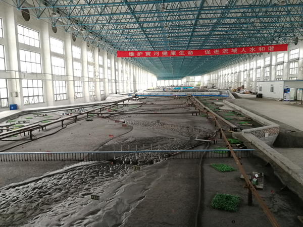 7月8日,实习团队来到水利部黄河水利委员会的模型黄河进行参访。模型黄河,是把原型黄河按比例浓缩在一个实验室中,对原型黄河所反映的自然现象进行反演、模拟和试验,以揭示黄河内在规律。实验室内最为主要的,是基于相似理论建立的长达上千米的模型黄河,模拟了自小浪底至东营入海口的黄河河道,是众多科研人员和工程师的智慧结晶,其对原型黄河的长宽、比降、地形等均按一定比例尺进行缩小,以能够在实验室内反映出黄河最接近真实的情况。
