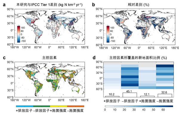 图3 本研究与IPCC Tier 1方法的差别及主控因素