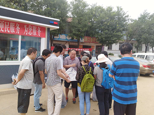 8月31日上午,联合团队一行9人直赴受灾严重的寿光市稻田镇东里村等,实地调查村庄农宅和蔬菜大棚的受灾过程和灾情统计,并深入到寿光与昌乐交界的丹河上游(丹河与济青高速)决口处进行现场勘察。之后的数天内,联合团队在潍坊市规划局、寿光市规划局、青州市规划局、环保局、水利局等地方政府部门的大力协助下,相继深入黑虎山水库、王坟镇(涝洼村、王坟村、阿陀村)、庙子镇(东张村、北李家庄村、殷公井村)、仰天山、金潮来食品有限公司、山东七叶树生物科技有限公司、山东绿圣兰业花卉科技股份有限公司等受灾地进行实地踏勘。