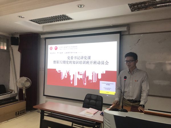 党课上,刘耕年从为什么选择加入中国共产党、如何从思想上和行动上积极向党组织靠拢以及入党流程三个方面进行了详细解读。刘耕年指出,现阶段国家正处于全面迈向现代化的关键时期,身为新时代北大学子,应该看到党的先进性,积极向党组织靠拢,应该勇于担当、努力学习、发挥自己的才能,为国家发展做出新一代青年贡献。刘耕年鼓励同学们向身边的党员榜样学习,向老一辈优秀党员学习,牢记北大人、城环人的初心,培养自己的使命意识与担当精神,在更高、更广、更有利的位置上发挥引领作用。刘耕年还强调,城环学生应结合学科特点,把自己的学习与国家“五位一体”的总体布局联系起来,深入学习领会习近平新时代中国特色社会主义生态文明思想,积极投身美丽中国建设、乡村振兴等国家重要战略中。
