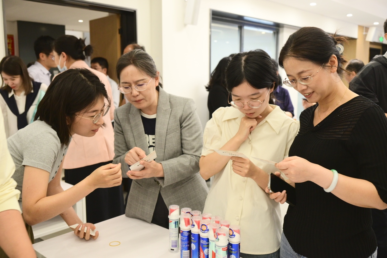 活动第一项是师德师风答题,老师们随机抽取一组题目并现场回答,题目内容不仅涵盖了国家关于教师职业道德的方针政策,还融入了教育教学实践中常见的师德师风分析与判断,在考验理论知识的同时也促进了进一步的思考。老师们跃跃欲试,积极参与,在轻松欢乐的氛围中深入学习并巩固师德师风的相关知识与实践要求。