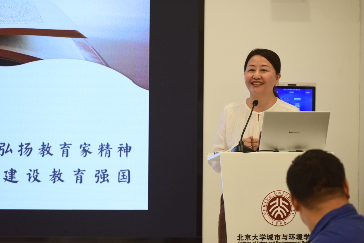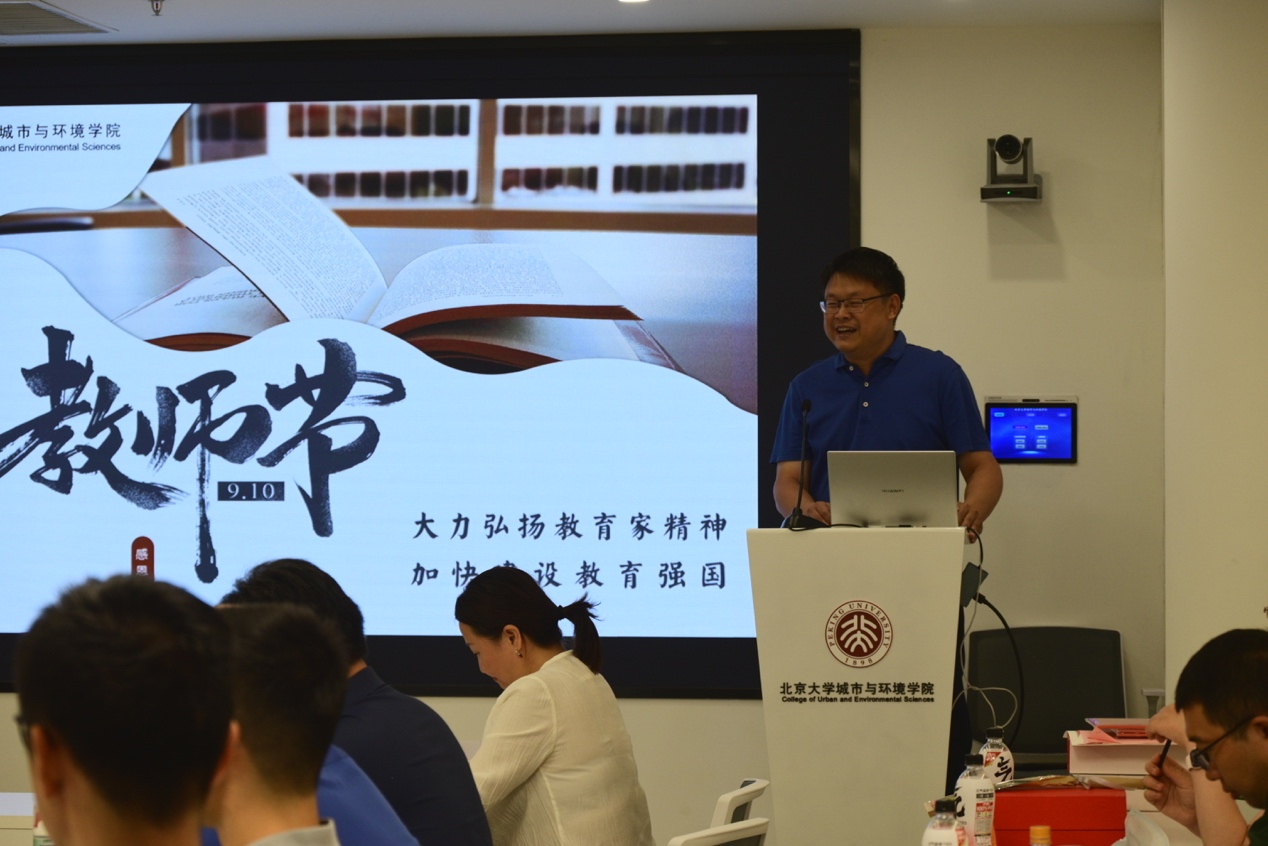 接着,教师节颁奖仪式正式开始,活动由学院工会主席、副院长刘萍主持。院长贺灿飞和党委书记彭建为活动致辞,他们回顾了学院老师们齐心协力开展教育和科研工作的经历和成果,感谢老师们长期以来的辛勤工作,认为近年来学院在地理学和生态学学科建设、人才培养等各方面取得的卓越成就离不开每一位老师的支持和付出,期待未来老师们继续砥砺前行,共同为学院的发展而奋斗,并向学院全体老师表达了节日的美好祝福。