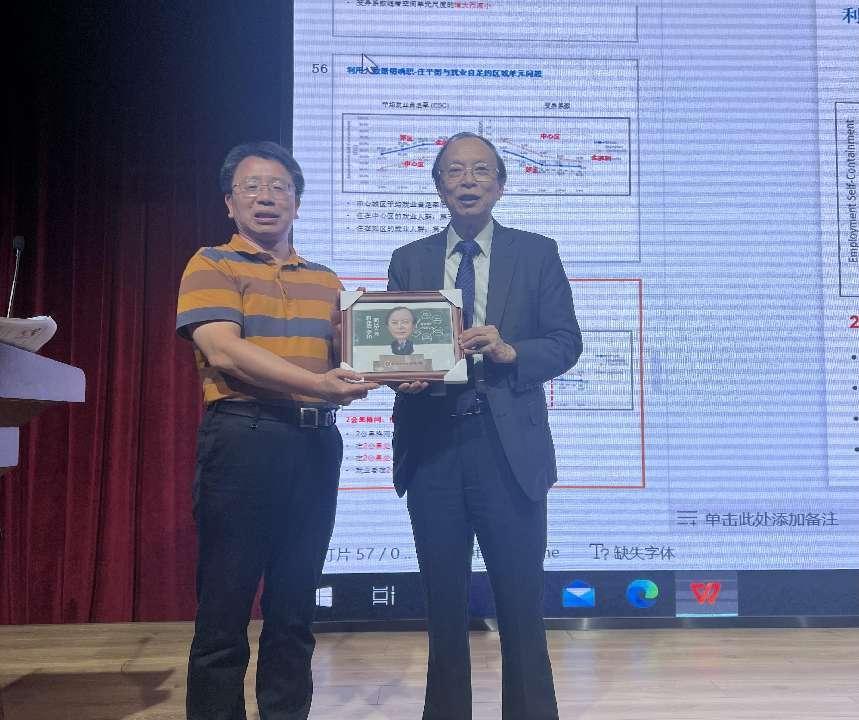 最后,贺灿飞院长代表学院对叶嘉安院士为我们带来精彩报告表示热烈感谢,并为叶嘉安院士送上了纪念品。贺灿飞院长指出,叶嘉安院士在国际上首先将案例推理系统与GIS相结合,首次提出细胞自动机(CA)的城市规划模型,把环境因素、城市形态、城市密度等引进城市CA模型中。是较早分析中国城市社会空间结构的学者之一,提出土地产权对城市发展和规划的影响。本次讲坛现场反响热烈,激发了同仁们的学术热情,师生们均感到受益匪浅。