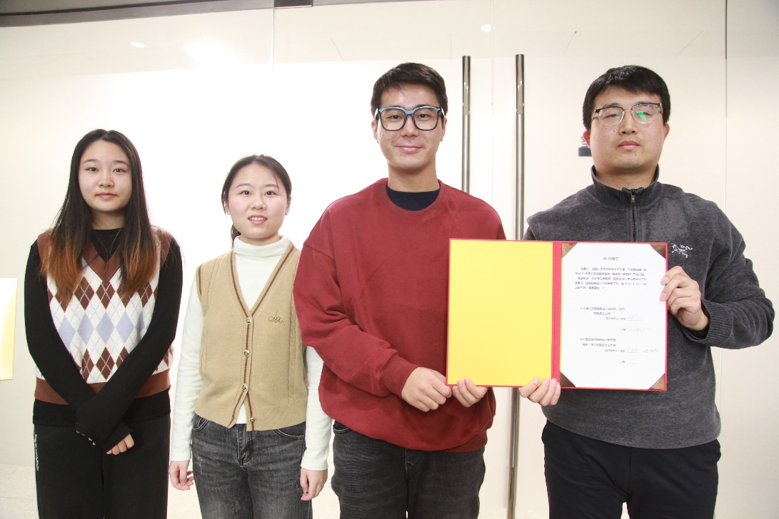 张仁达与工作室设计师代表陆莹、刘润轩、张可欣共同签署雁翅镇项目委托书