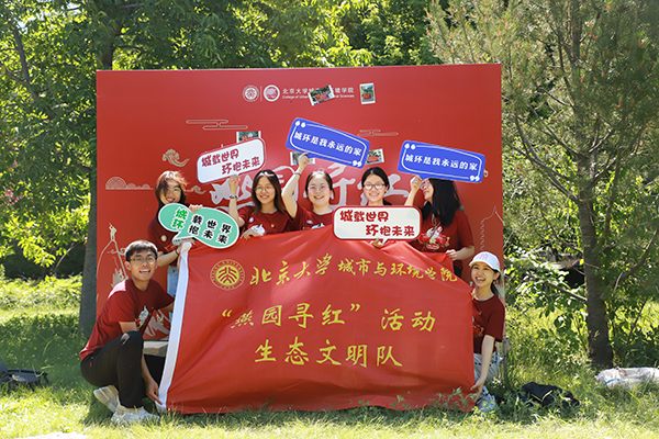 在“燕园寻红”授旗环节中,刘耕年、王逸鸣、张新平、何瑾、王春和万岱向参加活动的队伍授旗,6支队伍结合专业背景分别被命名为“美丽中国”“生态文明”“绿水青山”“绿色低碳”“智慧城市”“乡村振兴”,将“城载世界,怀抱未来”的专业情怀融入到活动当中。