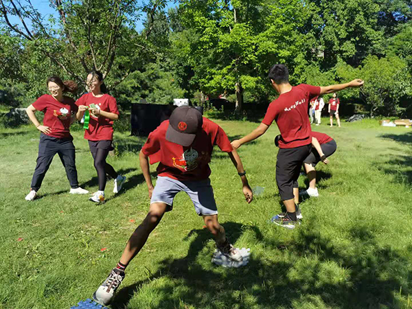 “翻天覆地”阶段活动点设置在“振兴中华”碑前,“红色旋律,青春之歌”游戏帮助大家再忆1981年排球世界杯预选赛,中国男排在0:2落后的情况下奋起直追的往事。同学们在“团结起来,振兴中华”口号的激励下,通过红歌接唱游戏唱响了时代歌曲,重温了红色旋律,回顾了四十年改革开放的峥嵘历程,感受了北大历史中蕴含的磅礴精神力量。