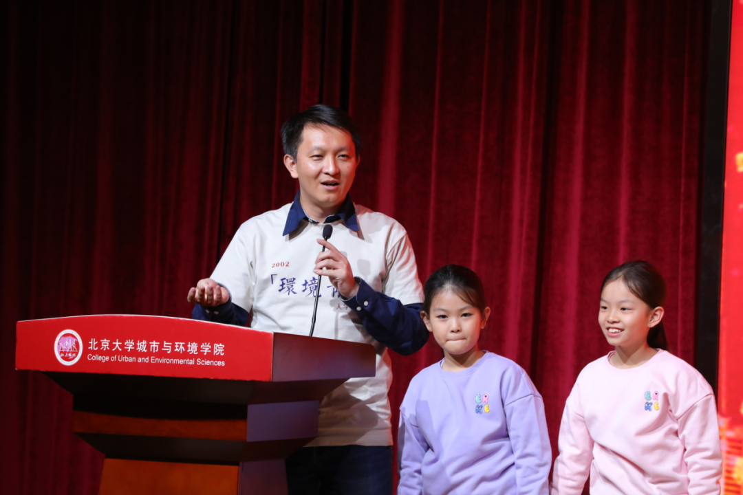 接下来,老师们一一发言。刘耕年老师欢迎校友们回家,他忆及地貌实习的点点滴滴,特别提到了实习中他因事需要提前返京,同学自发凌晨送别老师并合影的感人故事。最后他祝福大家身体健康,工作顺利,欢迎校友们以后常回来看看。林坚、曹广忠、韩凌、刘德英老师分别分享了在专业课及学生活动中与同学们互动的点滴,并衷心祝愿同学们事业更上一层楼。发言结束后,部分校友子女“环二代”上台为老师们献花并合影。