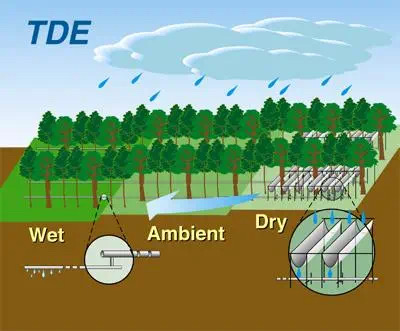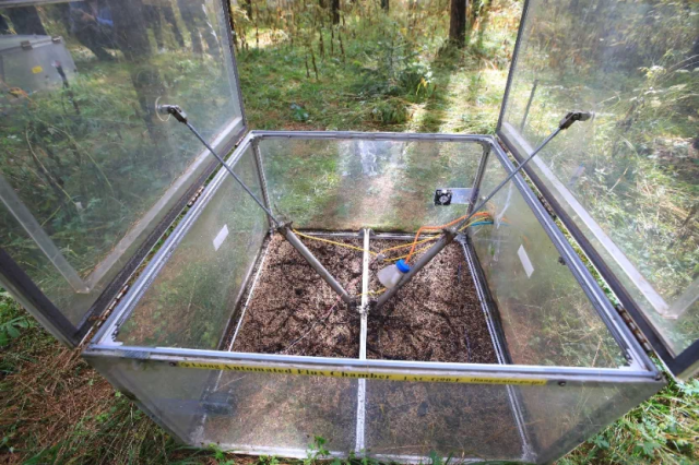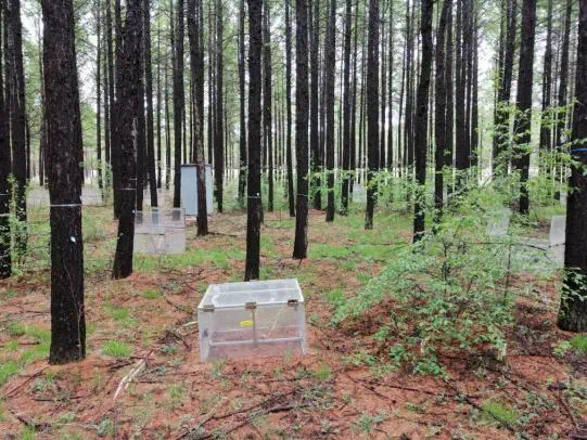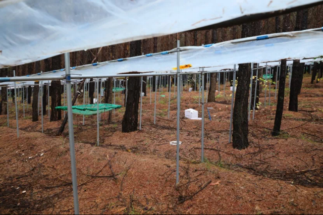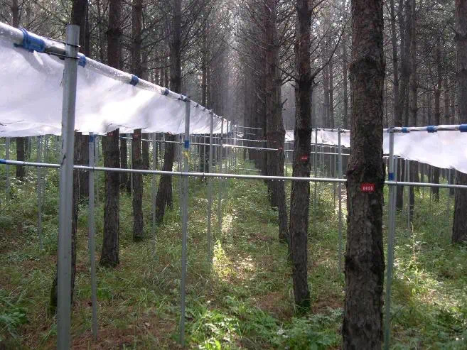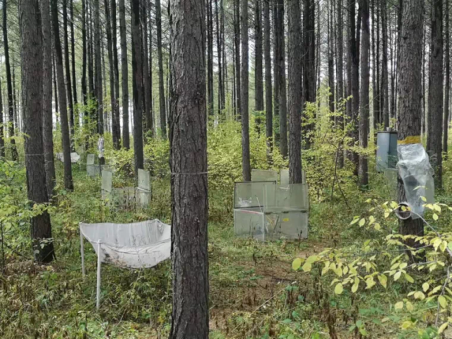 郑成洋副教授团队选择塞罕坝45年樟子松人工林,通过穿透雨转移方法,增加、减少样方内+30%、-30%的水分,设立三个处理三个重复森林降水控制平台。研究樟子松人工林降水改变对水分利用效率、森林生长、土壤养分、植物生理等响应。