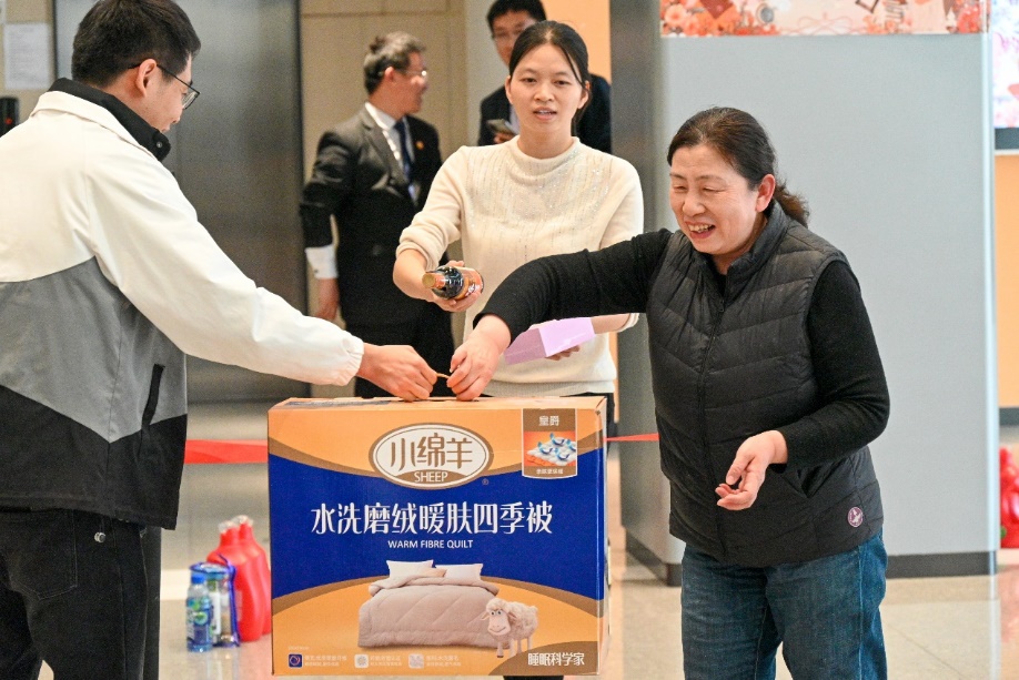 图 工作人员为趣味套圈获胜者发放领奖