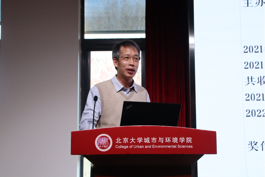 院长贺灿飞做学院年度工作报告。贺灿飞院长从队伍建设、教育教学、科学研究、楼宇管理和其他重点工作五个方面对学院2021年的工作进行报告,总结了学院去年在队伍建设和教学科研方面的工作重点、工作亮点和主要成绩,并介绍了新楼建设中的制度、配套和安全管理。2021年,学院进一步壮大师资队伍,通过重大人才项目打造创新团队,培养学科领军人才;教育教学成果丰硕,打造精品课程,推进新专业建设,多渠道培育和服务学生;科学研究成果显著,依托重大项目持续推进地理学科建设,学术成果数量和质量稳步提升,加强支撑平台建设并打造品牌学术讲坛;从配套设施、管理制毒、空气监测等多方面逐步完善新楼建设,得到学校领导的关注和支持。报告最后,贺灿飞院长向全体教职工表示感谢,并号召大家在新的一年砥砺前行,助力学院迈上新台阶。