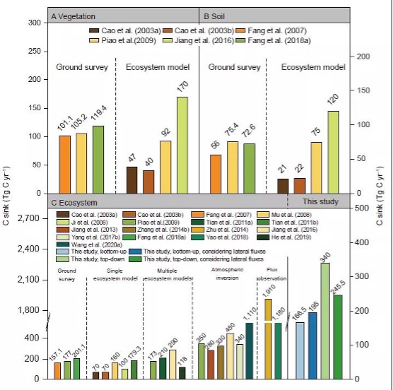 Yang, Y., Shi, Y., Sun, W., Chang, J., Zhu, J., Chen, L., Wang, X., Guo, Y., Zhang, H., Yu, L., et al. (2022). Terrestrial carbon sinks in China and around the world and their contribution to carbon neutrality. Sci China Life Sci 65, //doi.org/10.1007/s11427-021-2045-5