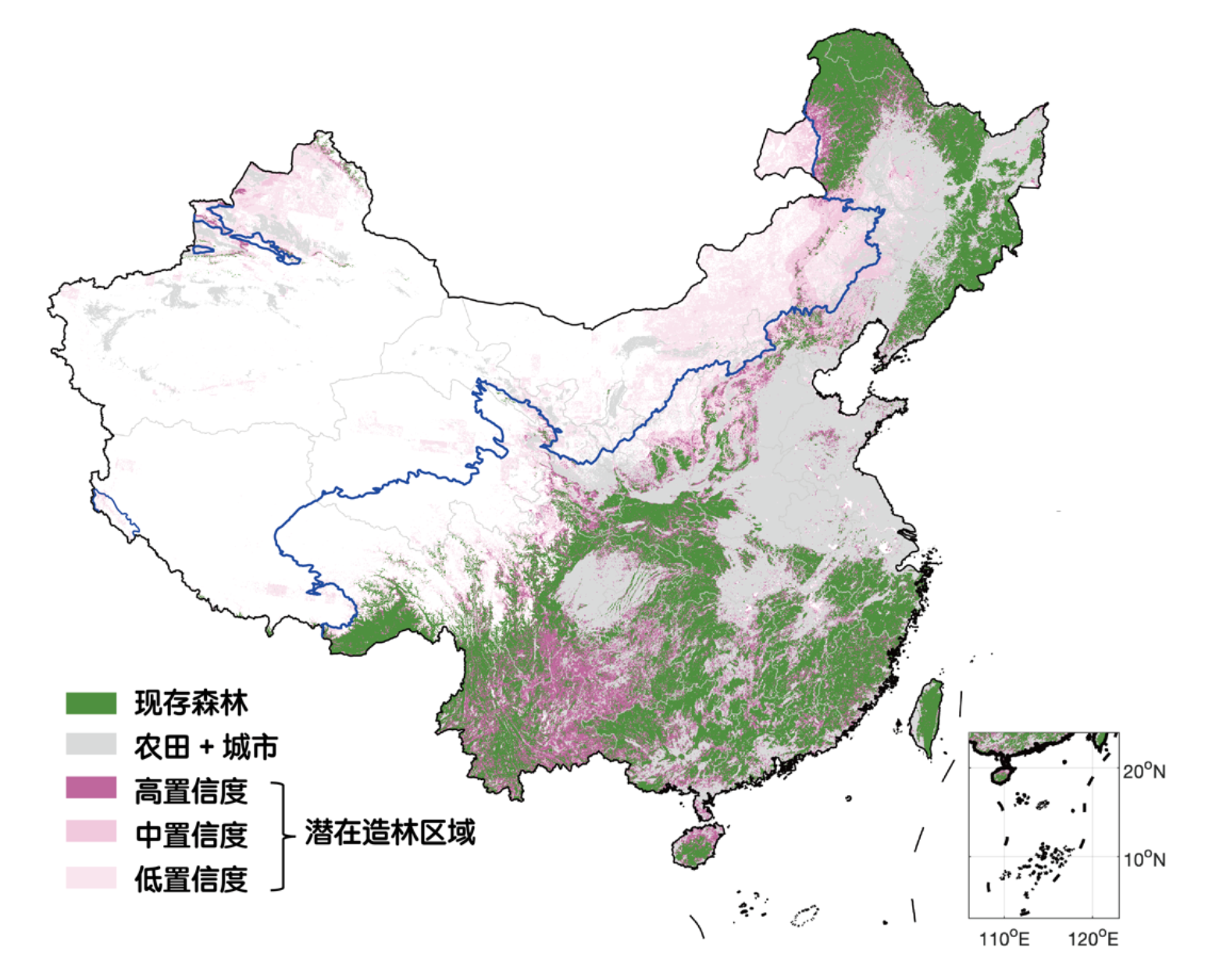 图1.中国潜在造林机会分布图