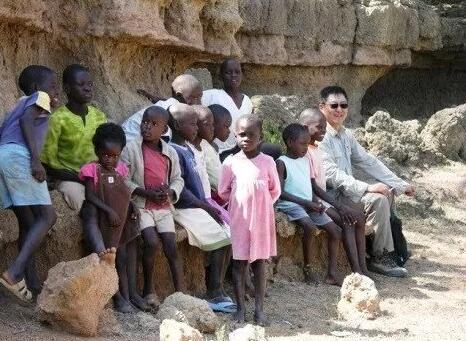 图3 2011年肯尼亚野外考察期间郭正堂与当地孩子们的合影