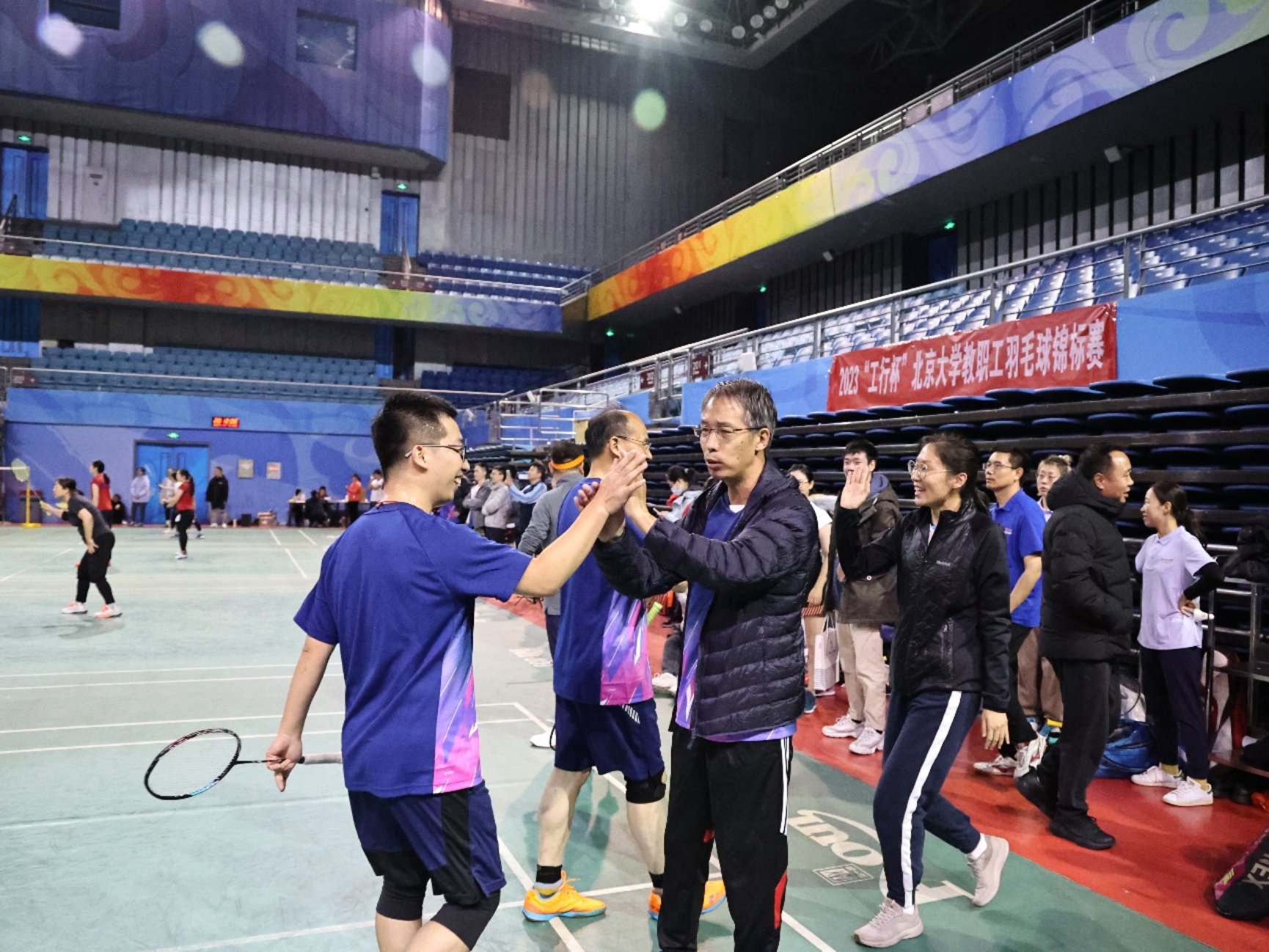 11月6日,2023色情影片 教职工羽毛球锦标赛在邱德拔体育馆激情开赛。我院共派出三支代表队参与本次赛事,院长贺灿飞、院党委书记彭建和工会主席、党委副书记陈耀华分别担任三支队伍的领队,学院三十名教职工参加比赛。赛场上,队员团结一致、顽强拼搏;赛场下,教工啦啦队呐喊助威,声振球场。大家在享受运动乐趣的同时充分展现出了城环教工队伍敢打敢拼、超越自我的良好精神风貌。