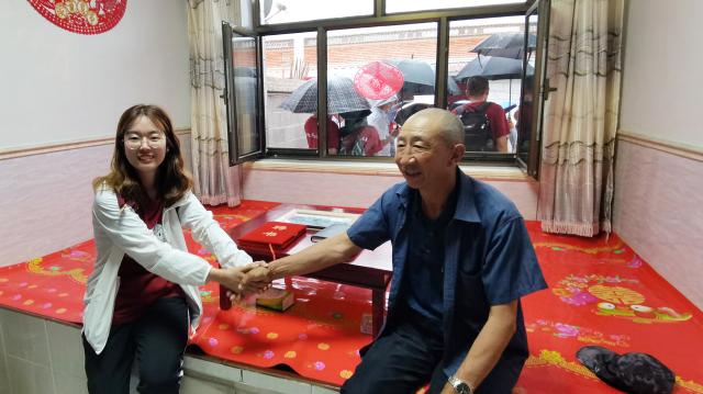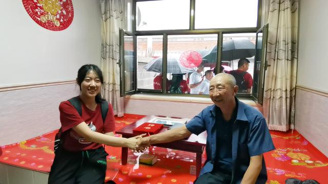 坊城新村调研期间,色情影片 师生来到村民白高山家中同白高山一家亲切交谈,询问村民的生活情况。刘耕年同白高山老先生热情握手,共话脱贫成功后人民生活的美好蓝图。
